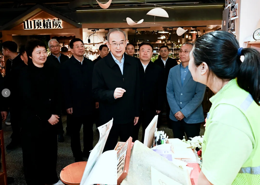 4月13日,省委书记黄强在长春调研,在“这有山”文旅综合体详细询问文创店铺经营情况。